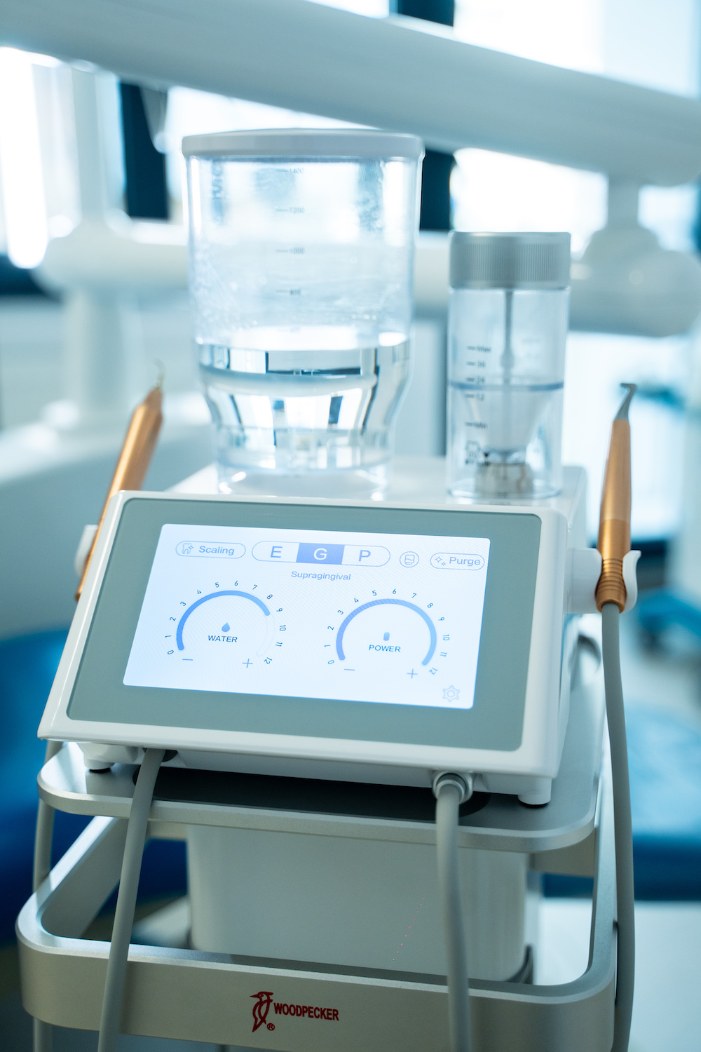 Airflow-ul este tratamentul final, care foloseste un jet fin de aer, apa si pulbere de bicarbonat pentru a indeparta petele de cafea, ceai sau tutun. Reda culoarea naturala a dintilor si ofera o senzatie imediata de prospetime.